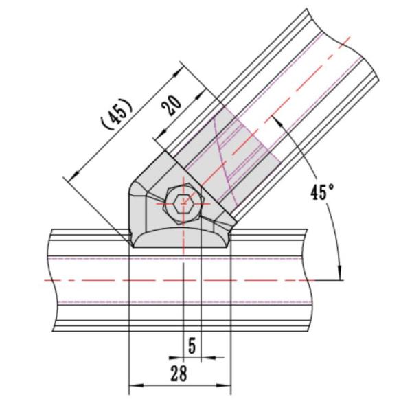 DYJ28-B07 Aluminum Tubing Connector Lean Pipe Joint Fastener Kit 45 Degree Double Tube Built-in Joint Images |